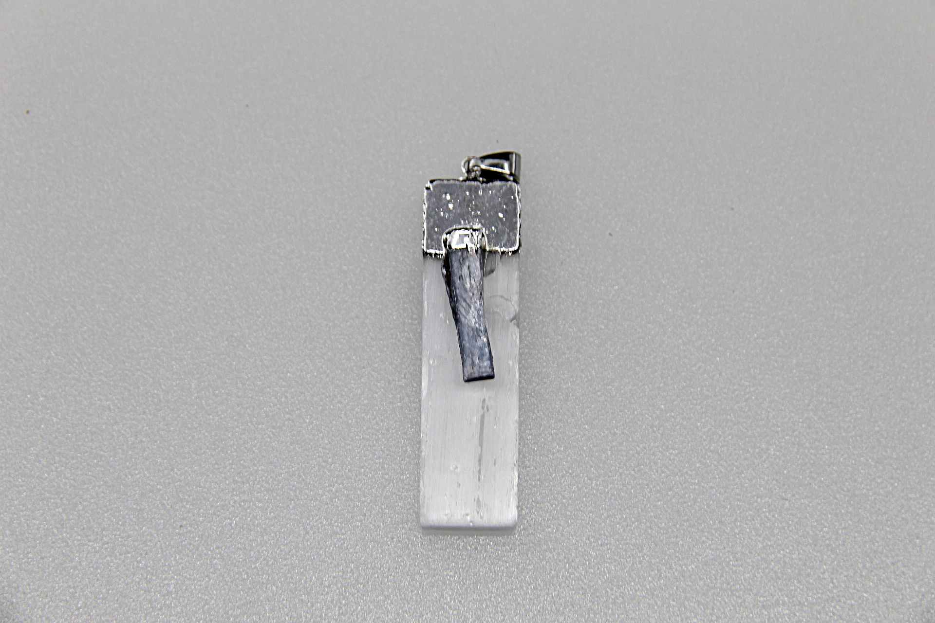 O pêndulo com a pedra de selenita e cianita azul é utilizado para limpeza de energias, purificação, sono tranquilo e conetividade com os guias de luz.