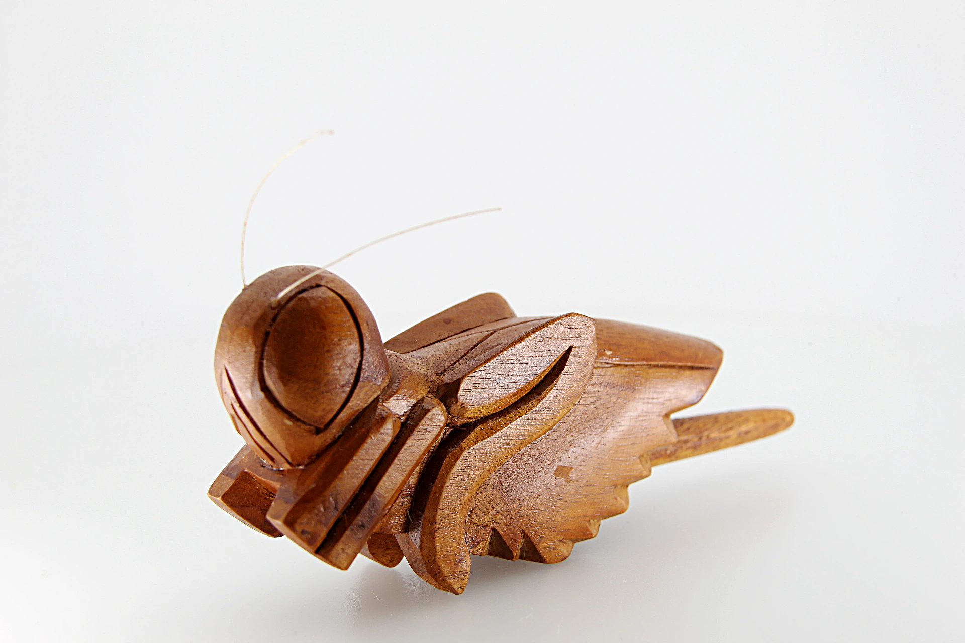O gafanhoto de madeira é inspirado na natureza, emite um som alegre ao ser friccionado, evocando boas energias e leveza ao ambiente.