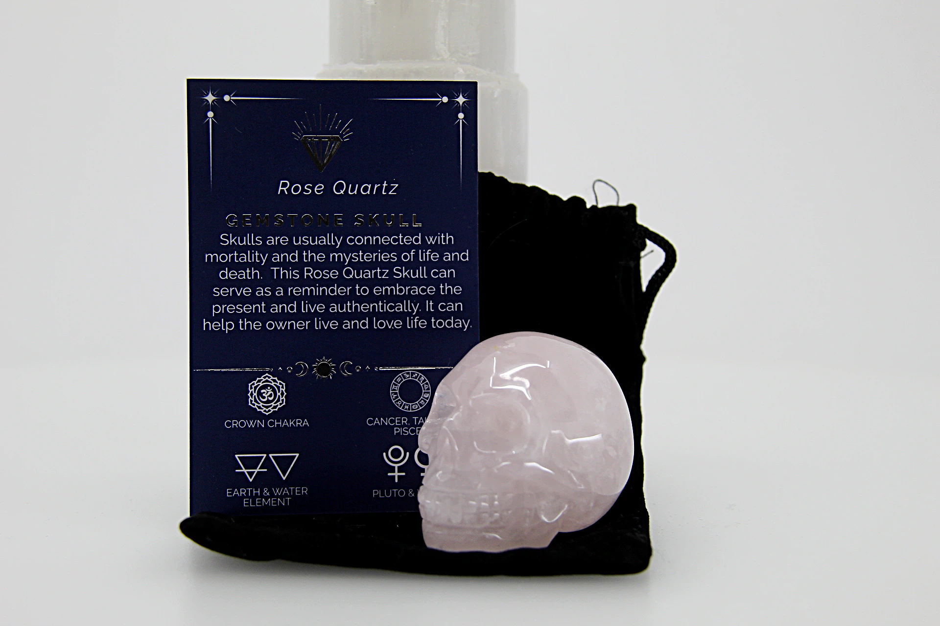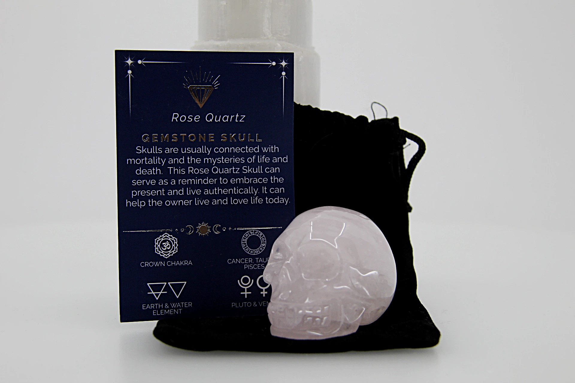 Espiritualmente, a caveira simboliza transformação, consciência e renovação, enquanto a opalite está associada à calma, clareza emocional e elevação energética.