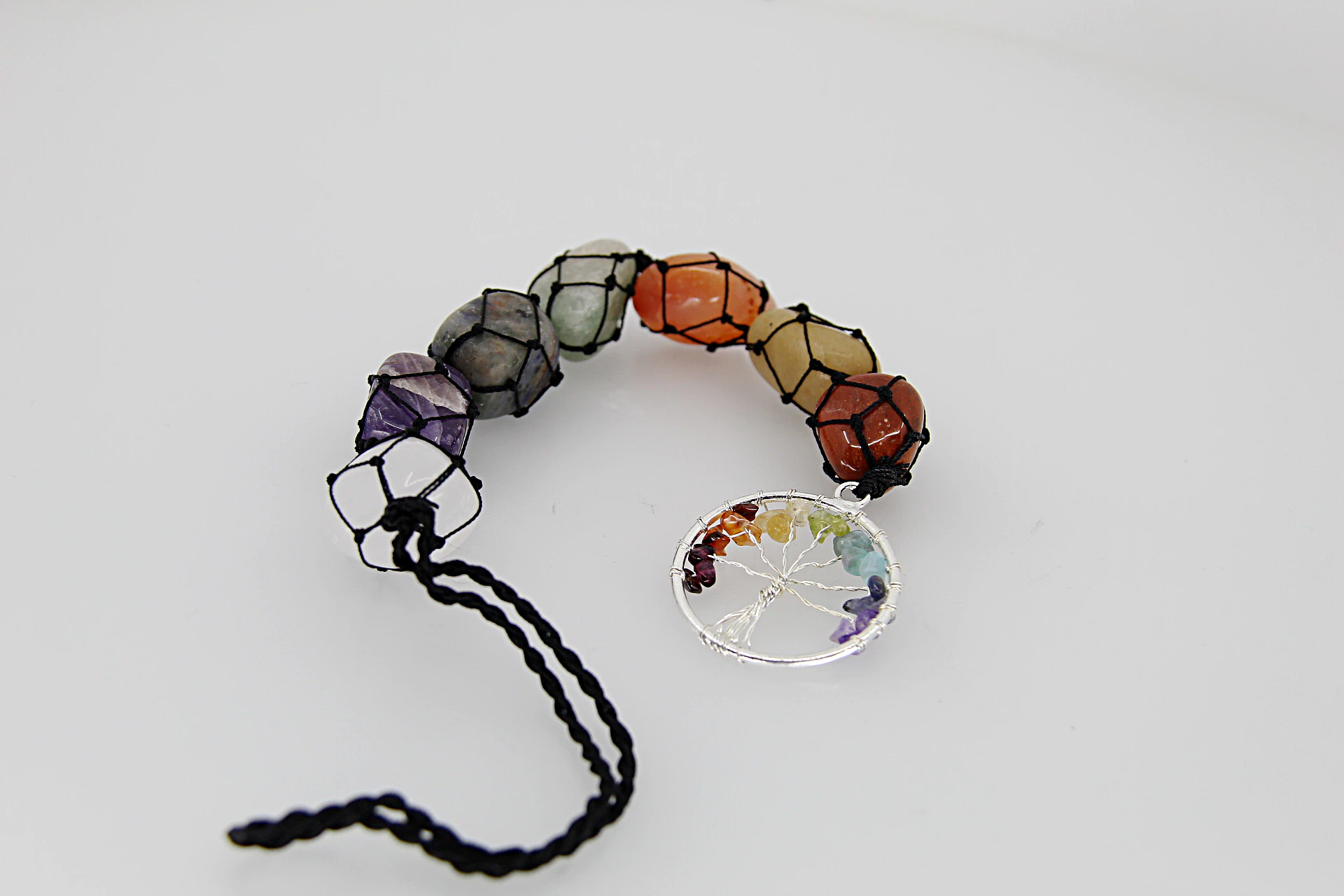 O pendente de pedras dos chakras com Árvore da Vida reúne diferentes pedras naturais associadas aos sete chakras, promovendo equilíbrio e harmonia energética no dia-a-dia. Cada pedra contribui para o alinhamento dos centros energéticos, apoiando o bem-estar geral.