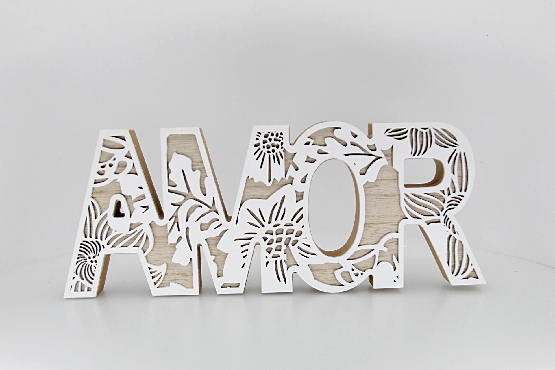 Placa de madeira delicada com a palavra “Amor”, perfeita para trazer calor e boas energias ao lar.