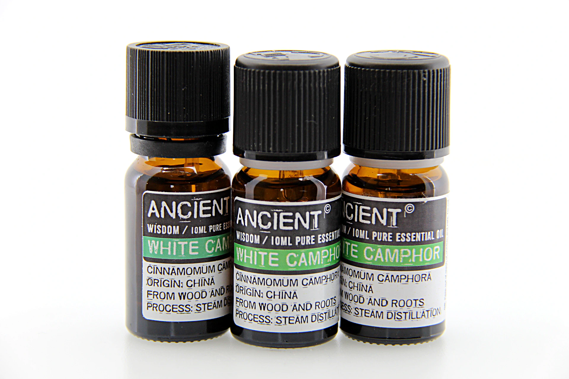 Óleo essencial de cânfora branca, conhecido pelas suas propriedades purificadoras e revitalizantes.