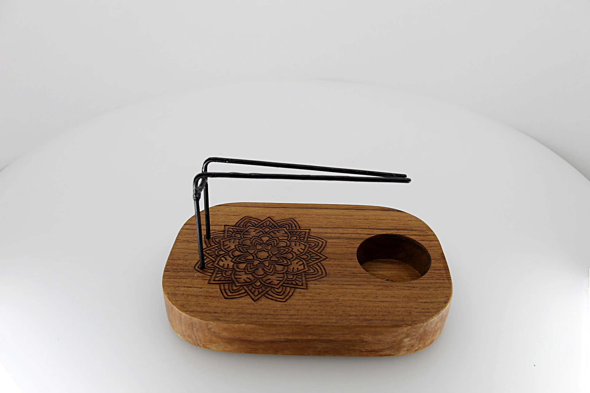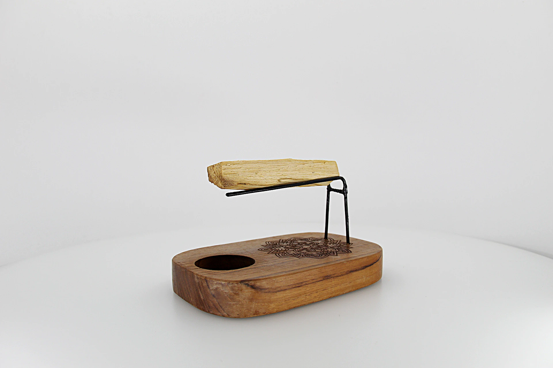 Queimador em madeira, especialmente concebido para queimar paus de Pau Santo de forma segura e prática.