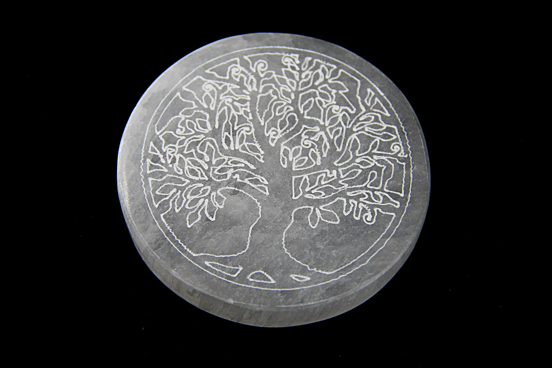 Base em selenita concebida para colocar cristais, pequenos objetos energéticos ou velas.
