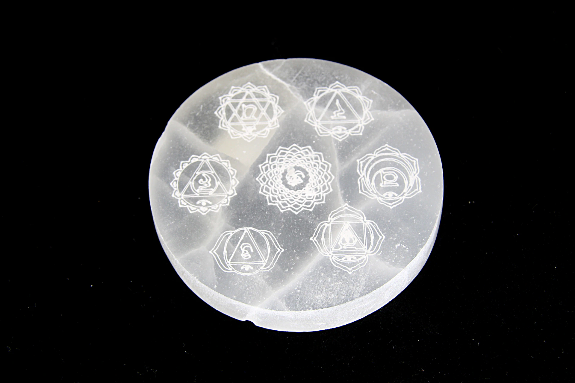 Base em selenita concebida para colocar cristais, pequenos objetos energéticos ou velas.