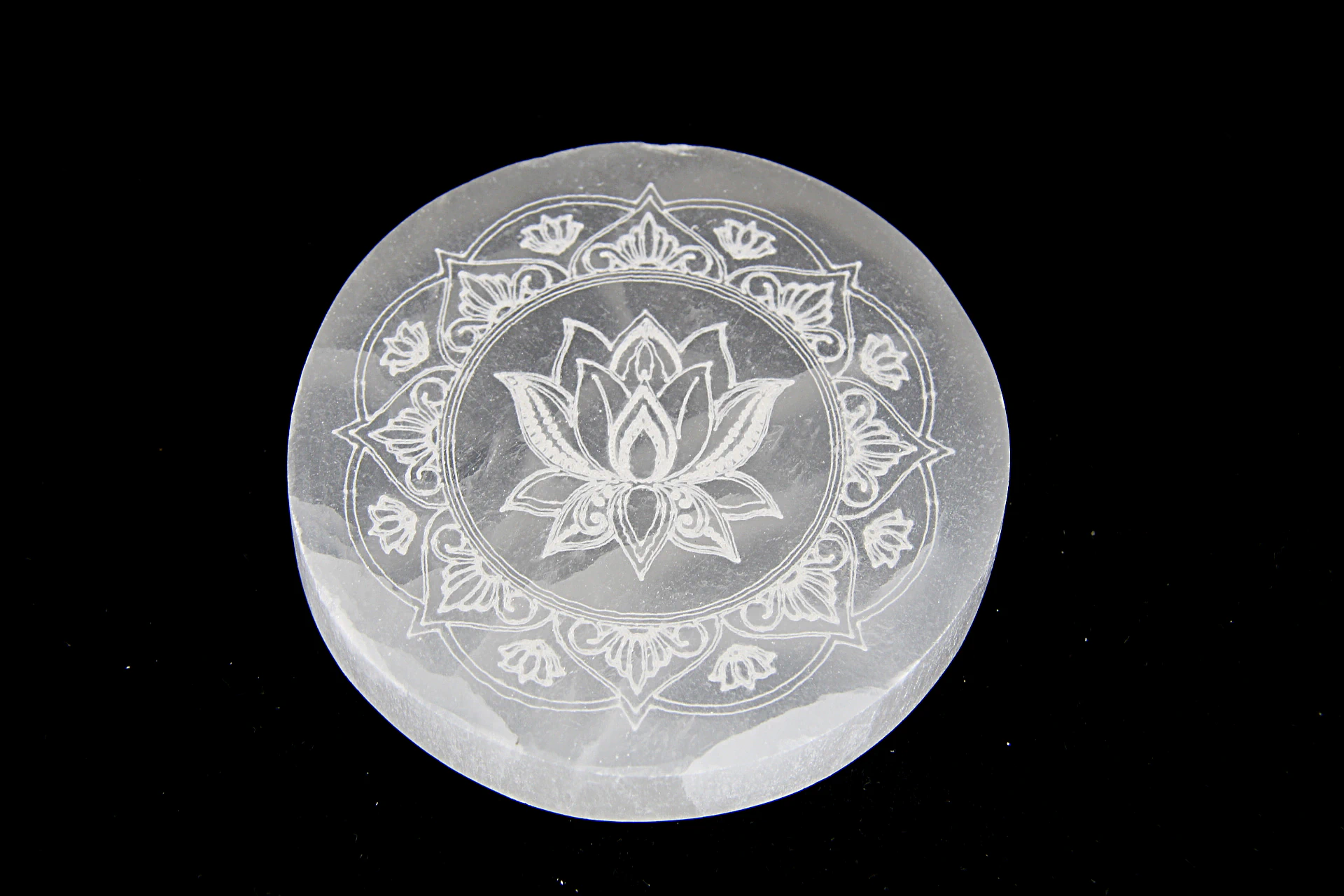 Base em selenita concebida para colocar cristais, pequenos objetos energéticos ou velas.
