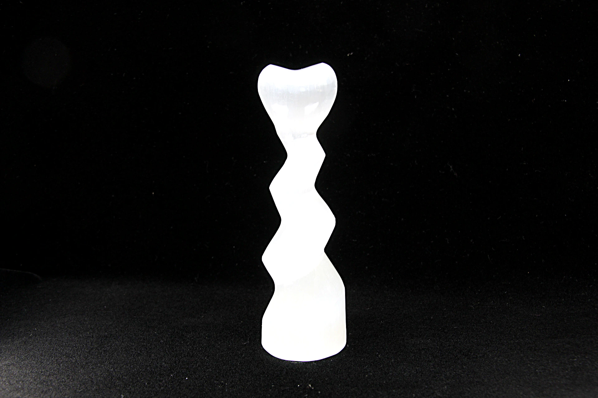 Espiral em selenita com coração integrado, ideal para meditação, purificação de cristais ou energização de espaços.