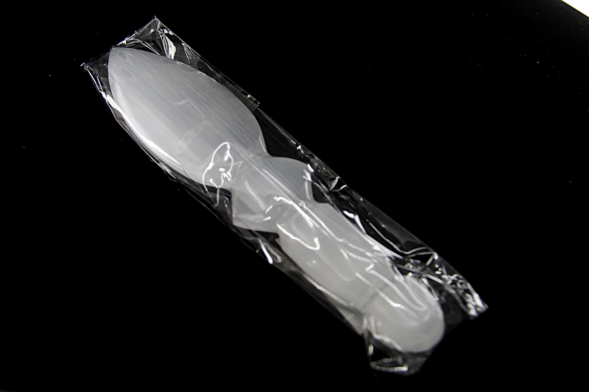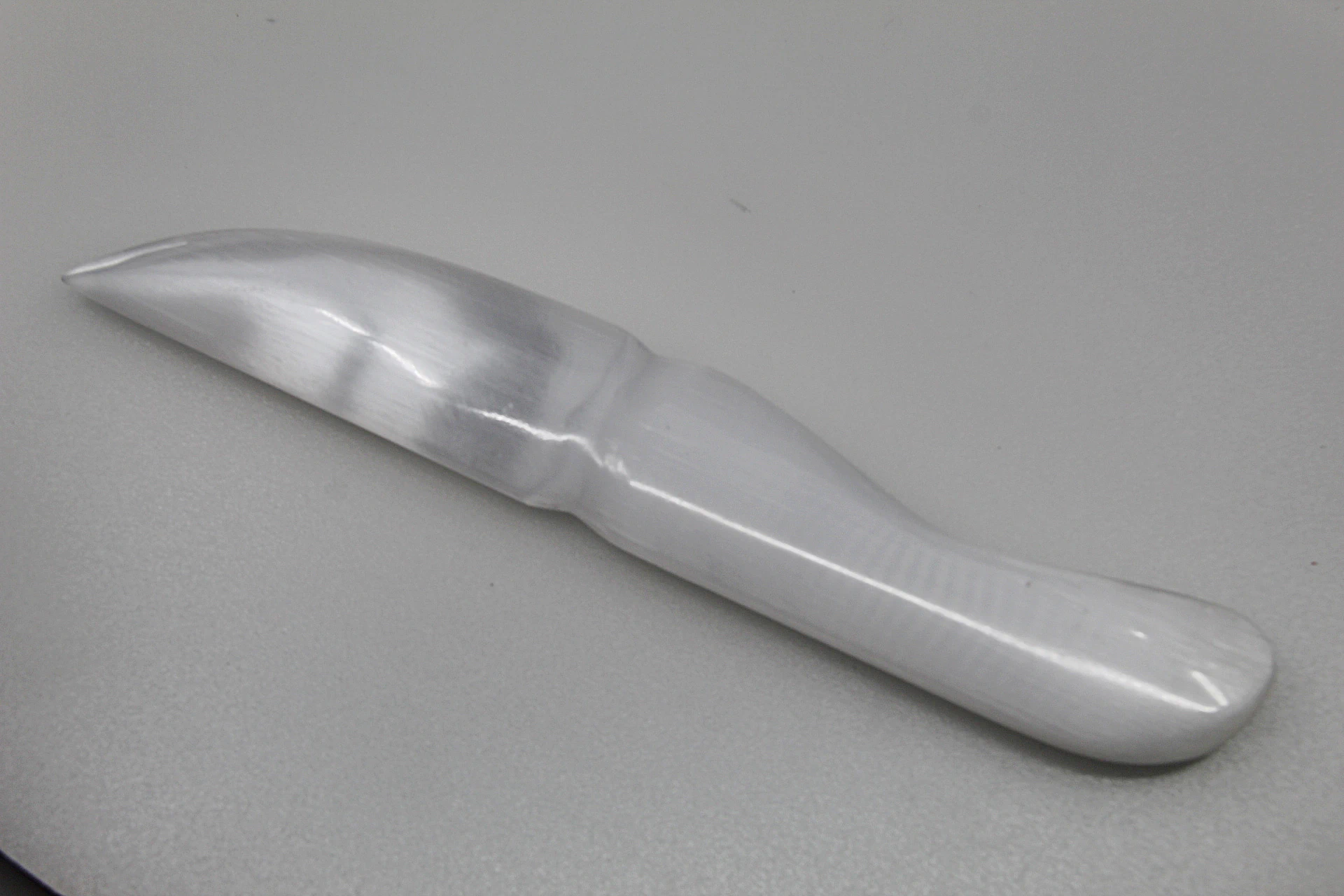 Faca em selenita, ideal para rituais energéticos, corte simbólico de energias negativas e purificação de espaços.