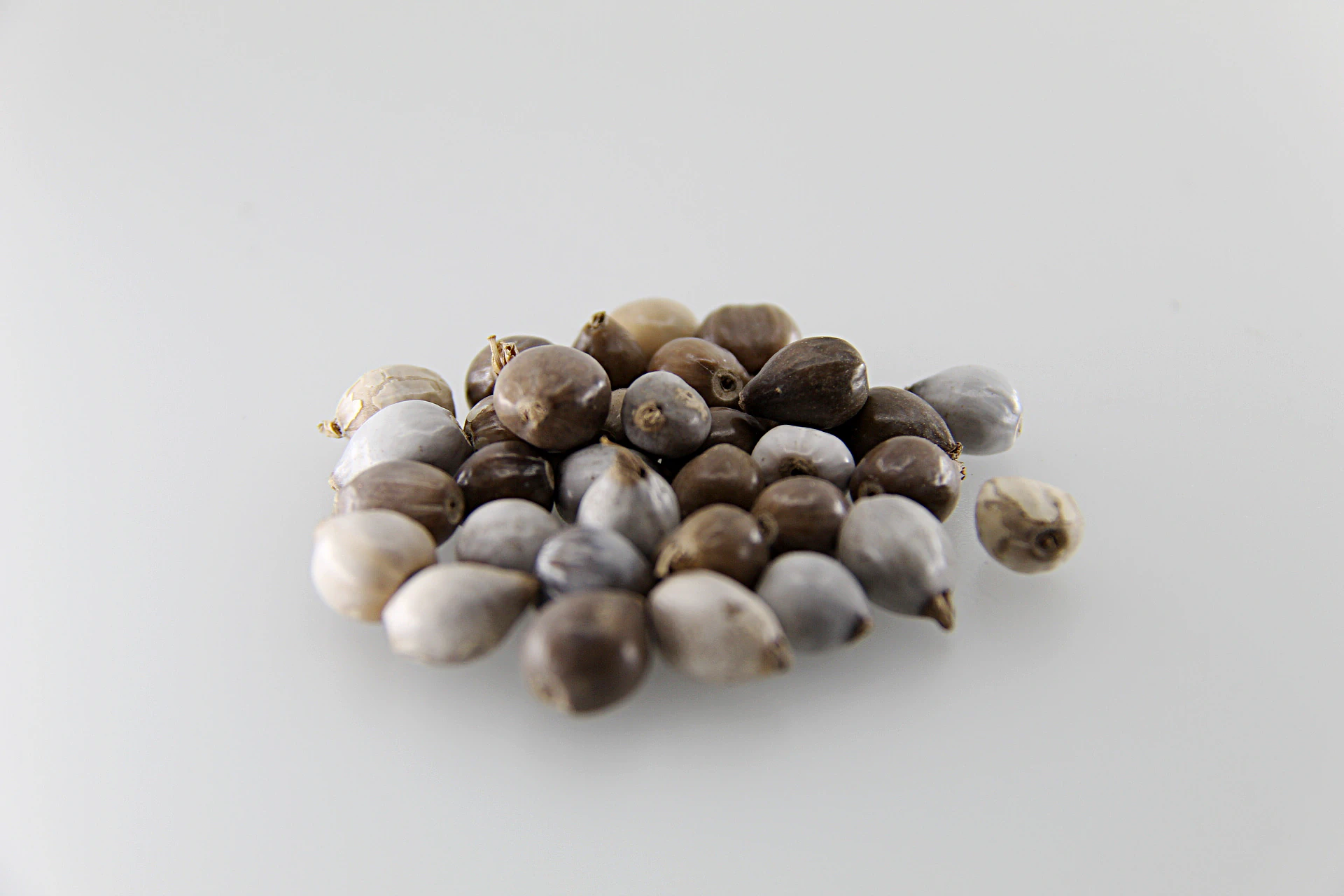 Sementes conhecidas como Lágrimas de Nossa Senhora, usadas em rituais de proteção, fé e fortalecimento espiritual.