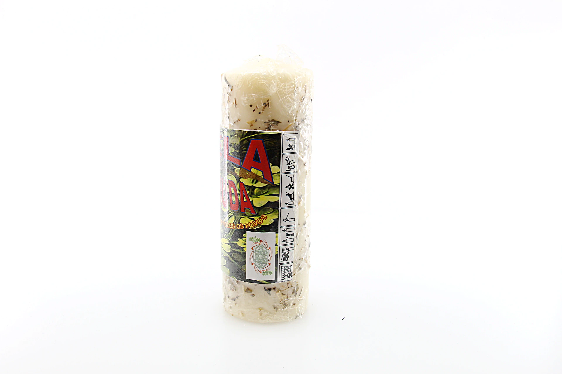 | Composição | Cera vegetal, Elementos Naturais Ritualísticos, Pavio |