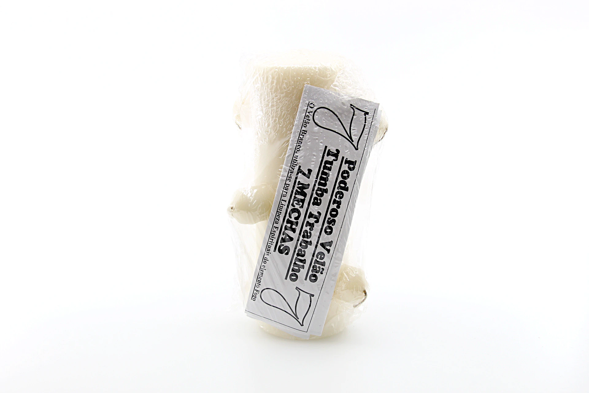Velão artesanal de 7 mechas brancas ou pretas, indicado para tratamentos espirituais, purificação e equilíbrio energético.